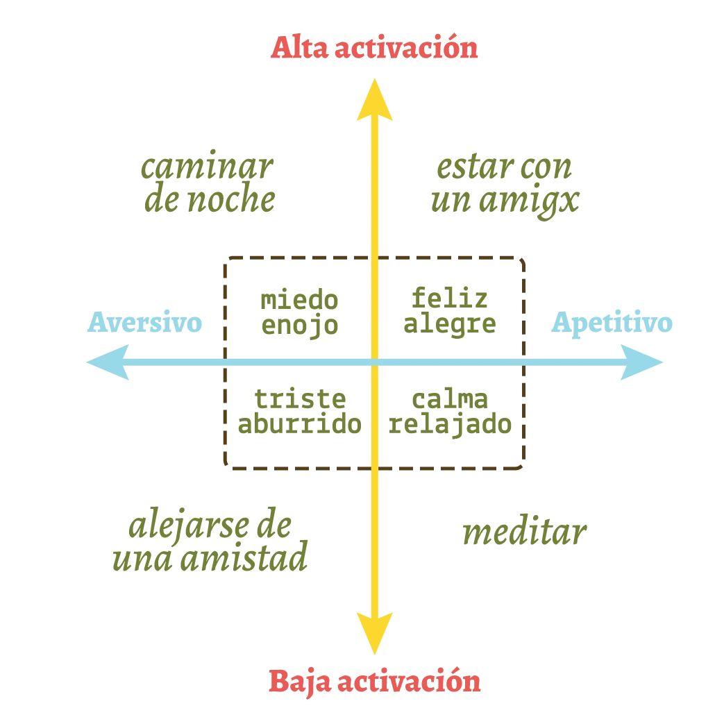 Para fortuna nuestra, Gross llegó a distinguir algunos usos de la palabra afecto: estados emocionales con valencia (por ejemplo, enojo, tristeza), situaciones episódicas (pelear, recibir malas noticias), estados de ánimo (melancólico, euforia), disposiciones (agrado, odio) y rasgos (alegre, irascible).