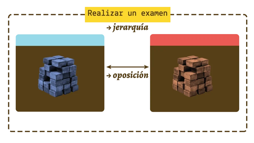 Un detalle a mencionar es que, así como “realizar un examen” contiene a “fracaso” y “éxito”, las redes de fracaso y éxito se relacionan a partir de un marco de oposición. De esta forma, la red relacional del éxito es opuesto al fracaso, y el fracaso opuesto al éxito.